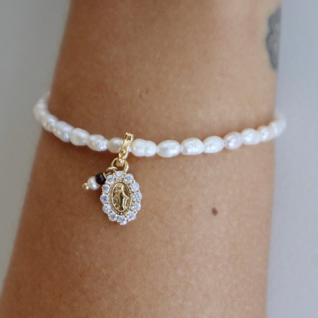 - A Pulseira Fé com Pérolas em ouro 18k para momentos verdadeiramente especiais