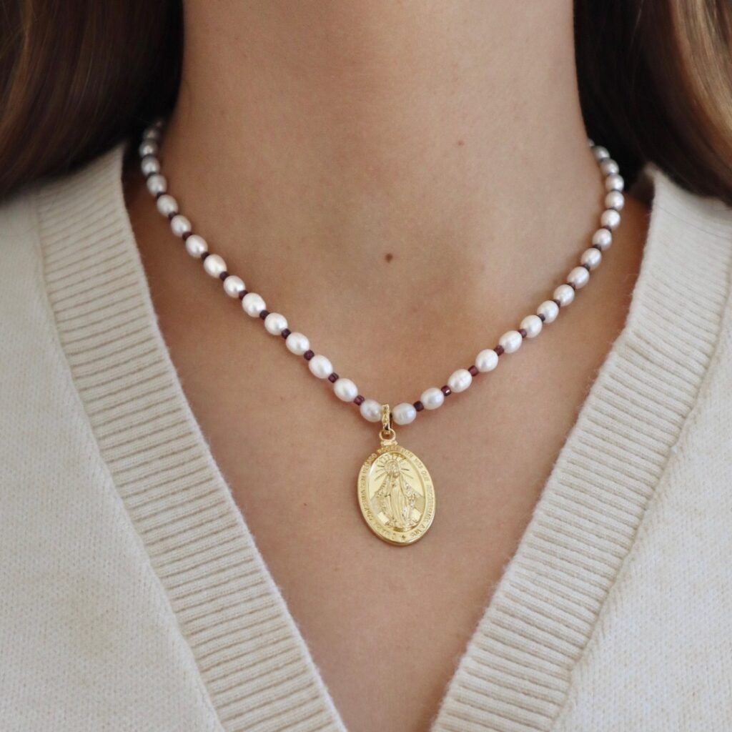- Colar com Pérolas e Granadas com Medalha Milagrosa de N. Sra. das Graças traz sofisticação para eventos importantes