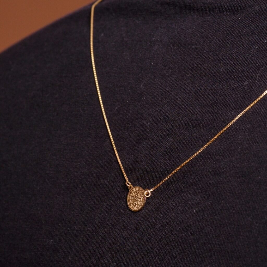 Ao usar a medalha, nos conectamos com mais de 1.500 anos de tradição e com milhões de fiéis que encontraram proteção através da intercessão de São Bento.