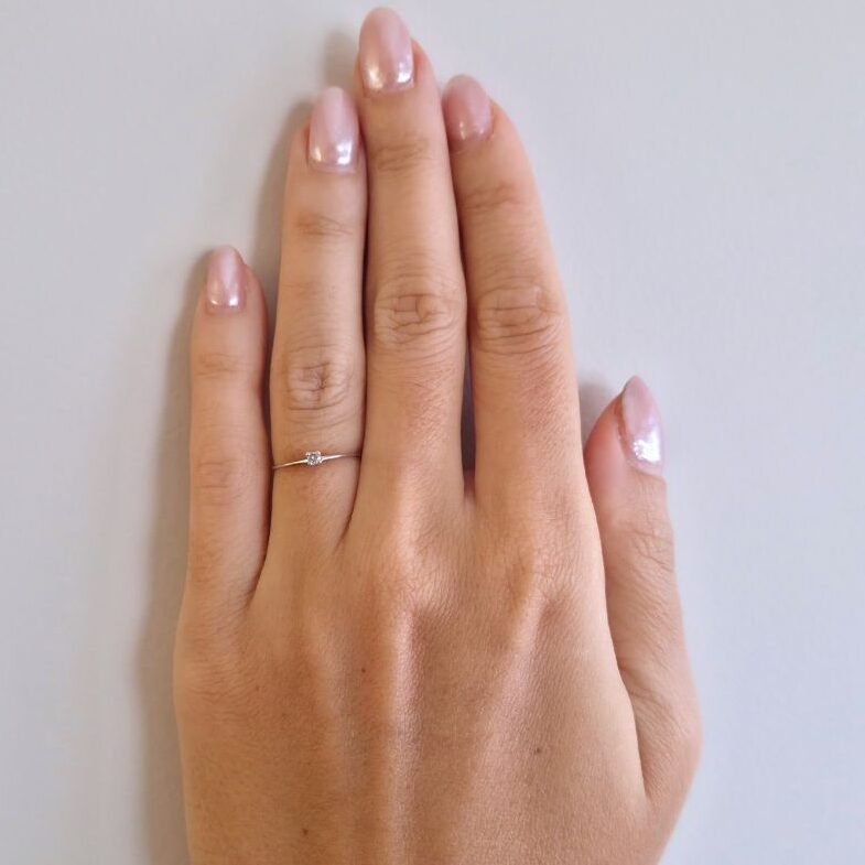 Este solitário em ouro branco é a definição de elegância minimalista e delicadeza.