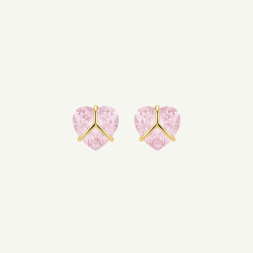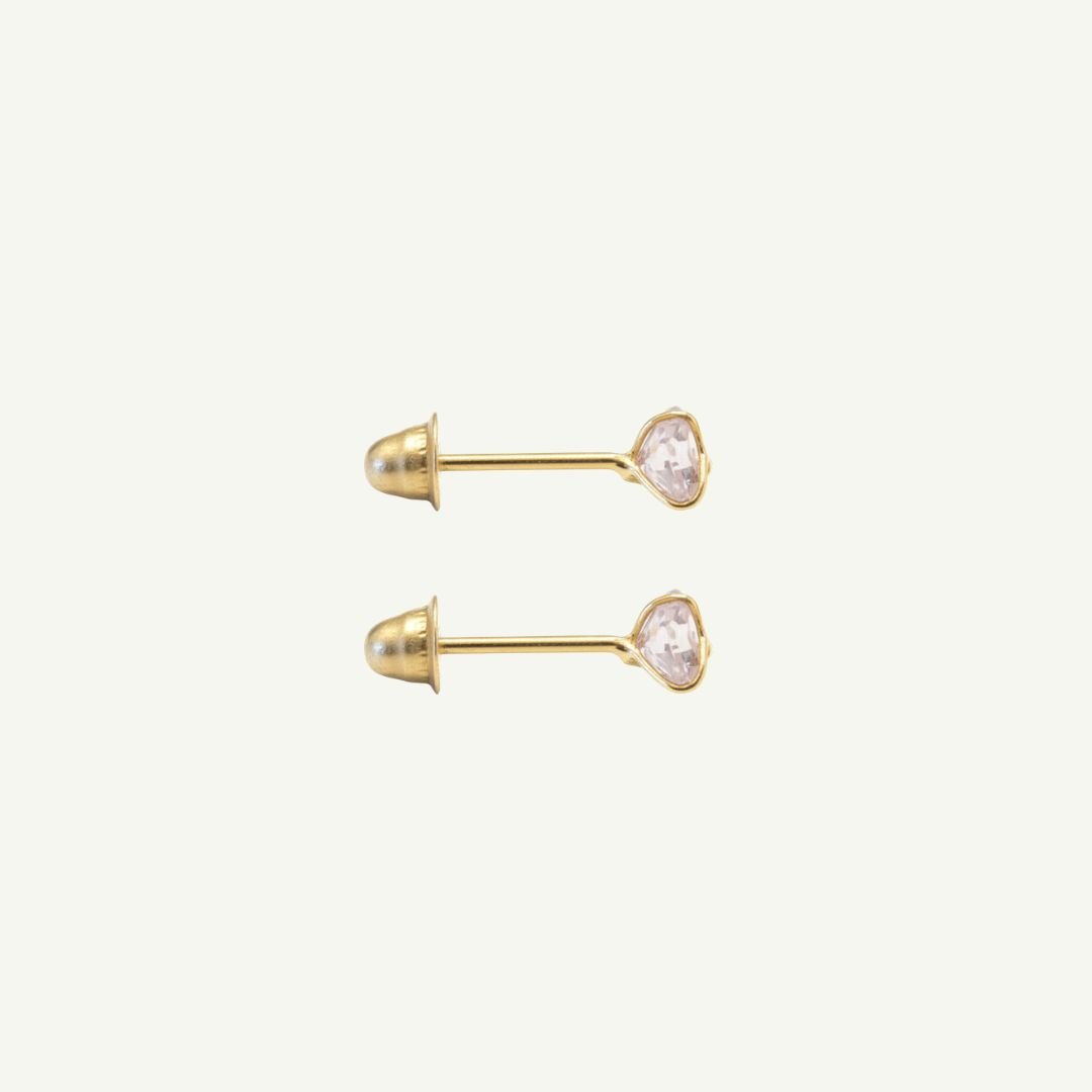 Este brinco combina a doçura do formato de coração com a segurança necessária para as pequenas, apresentando uma lapidação facetada em tom rosa suave que reflete brilho de forma delicada.