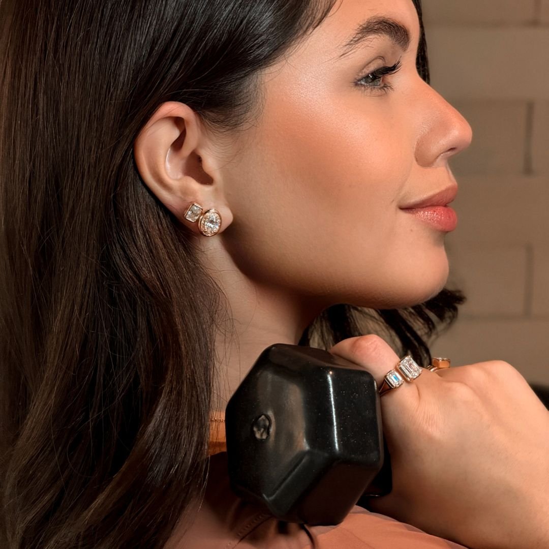 Se você procura um brinco para não tirar da orelha, acabou de encontrar. O formato retangular traz um ar contemporâneo ao clássico ponto de luz.