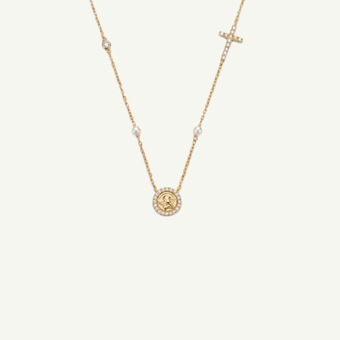 Nosso colar com pingente de anjo da guarda cravejado é a escolha perfeita para carregar sua fé e proteção consigo sempre.