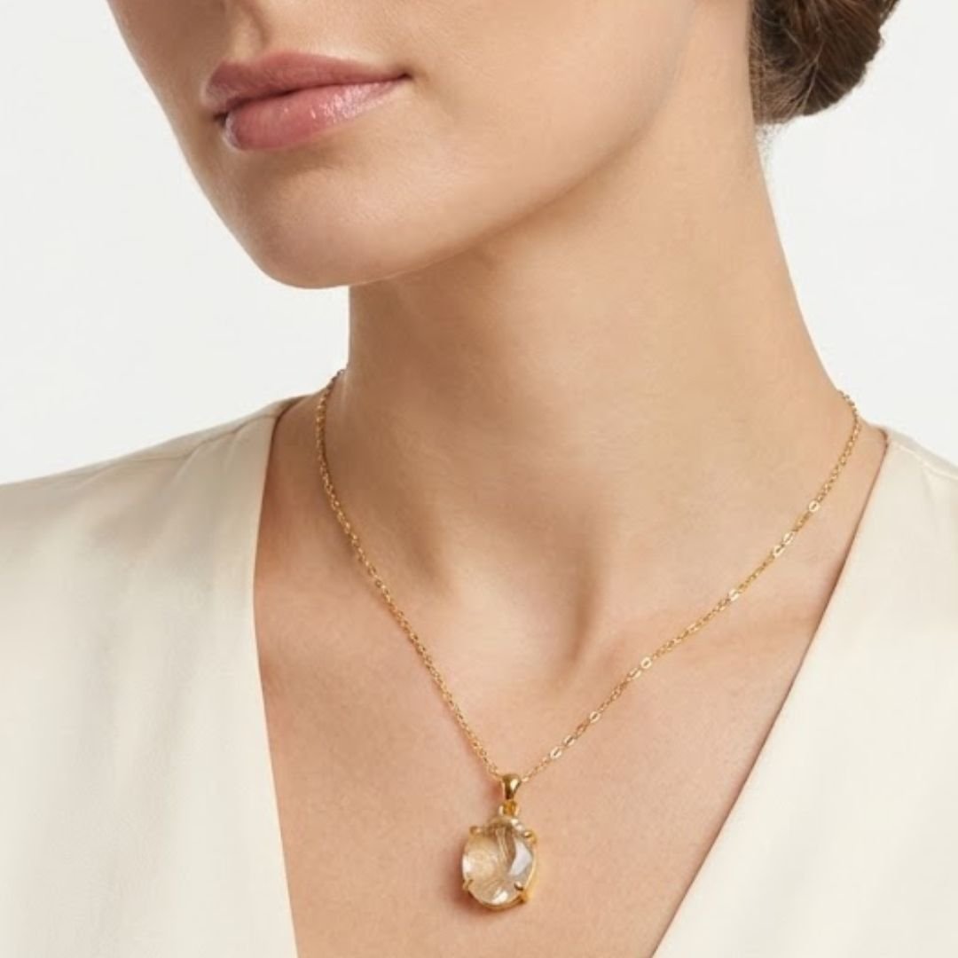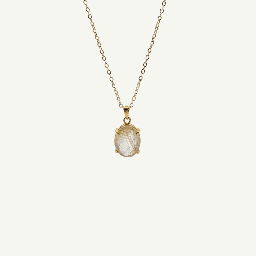 O colar Quartzo Rutilado em prata 925 banhado a ouro 18k simboliza clareza, energia e proteção. A pedra, com seus delicados fios dourados, reflete luz e inspiração, perfeito para quem busca sofisticação com significado.