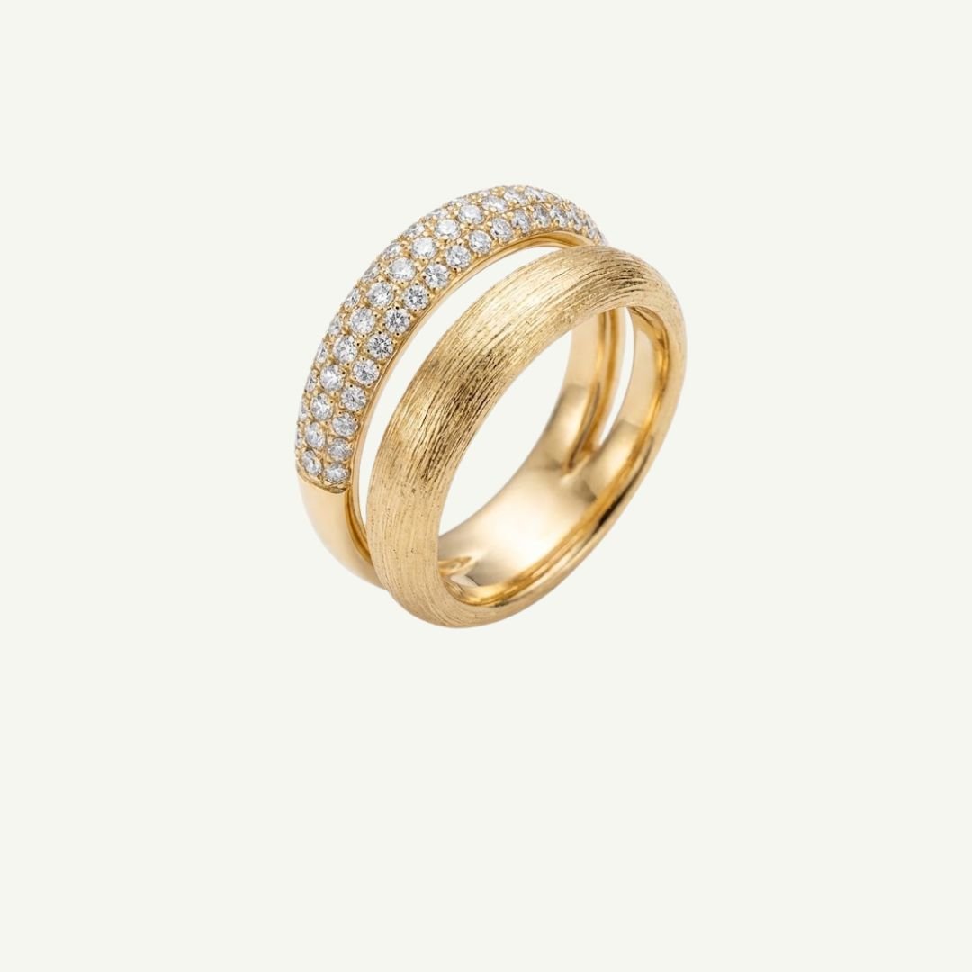 O anel duplo adicona o toque de modernidade, complementando ainda mais o seu look.