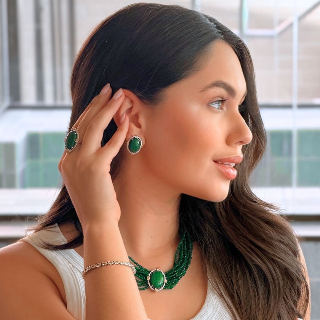 O conjunto Malaquita é escolha perfeita para adicionar cor, sofisticação e boas energias em looks do dia a dia e festas.