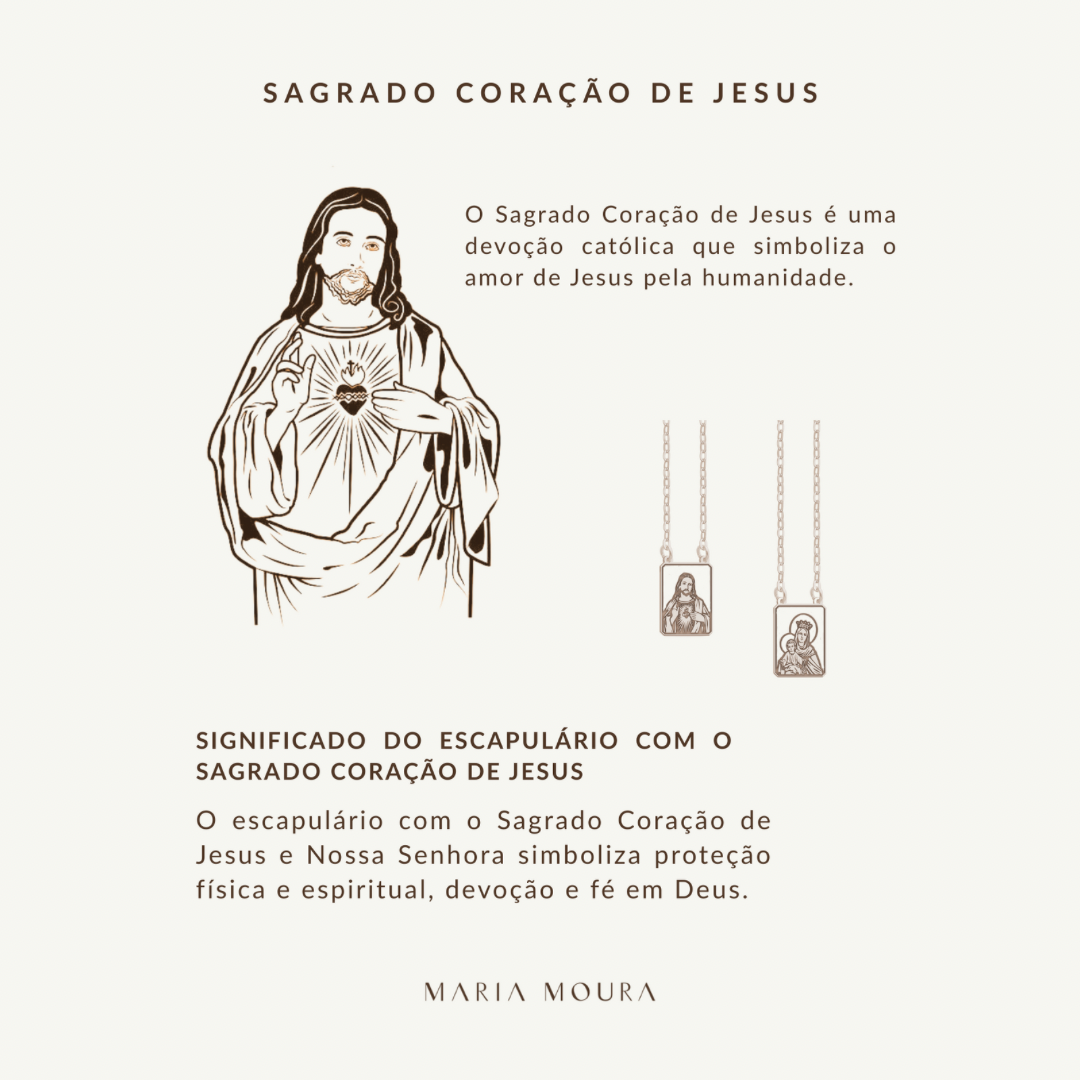 Traz as medalhas do Sagrado Coração de Jesus e de Nossa Senhora do Carmo em prata 925 com espesso banho de ouro 18k, mantendo o simbolismo e a proteção com leveza e elegância.