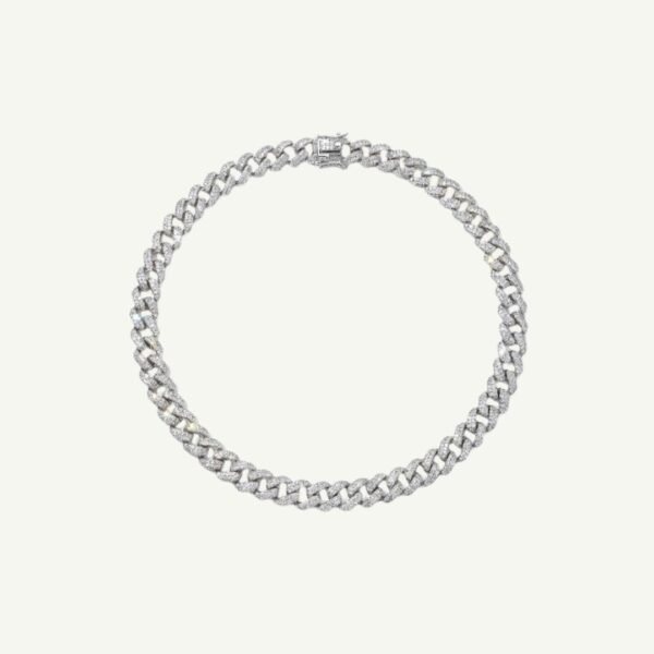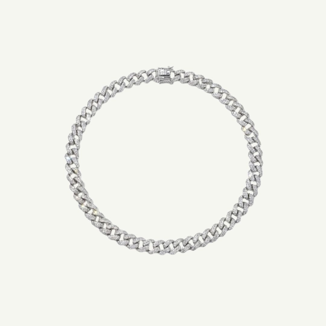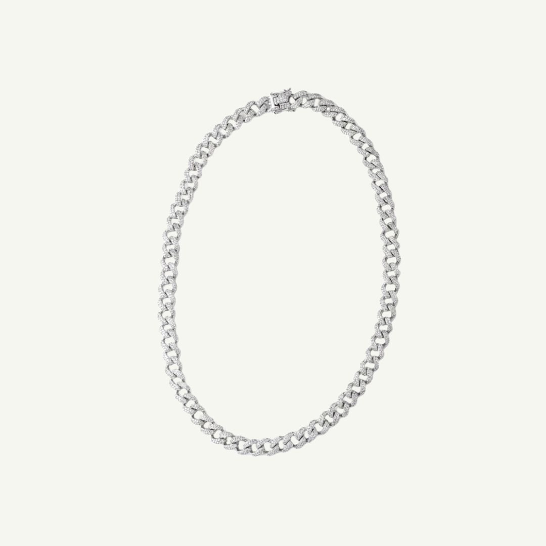 Esta gargantilha une a atemporalidade da corrente com o glamour do brilho total. Versátil, pode ser usada sozinha como protagonista ou compondo um mix de colares poderoso.