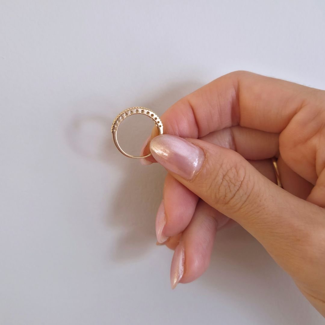 Meia Aliança com Diamantes em Ouro 18k