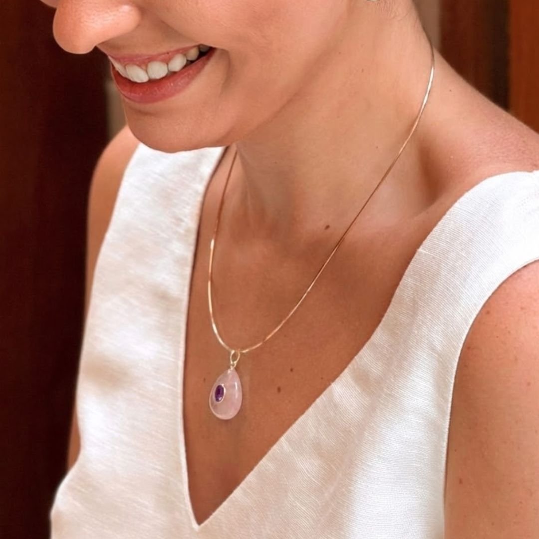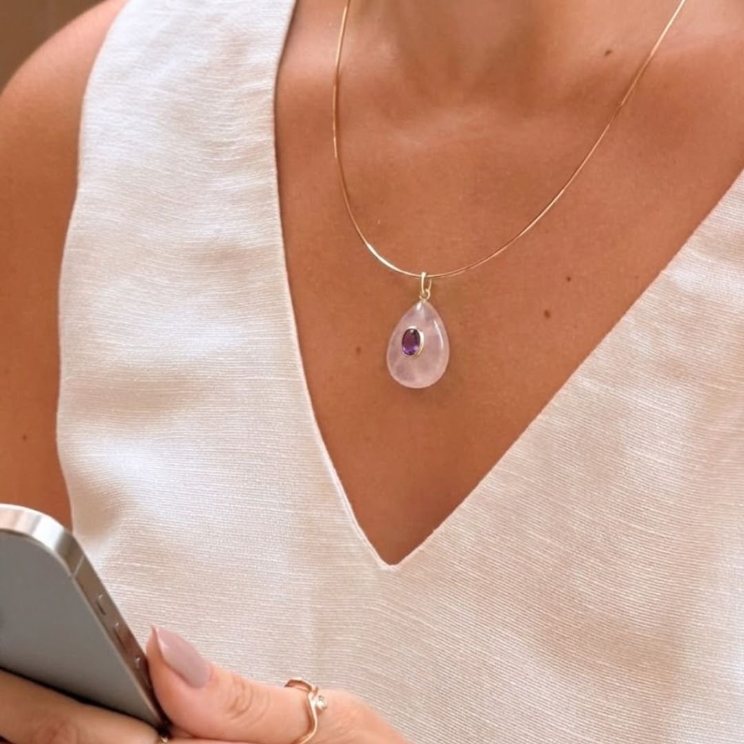 Estes pingentes fogem do comum ao trazerem a pedra natural lapidada com um delicado ponto de luz no centro, criando um contraste sofisticado. Seja na fluidez da gota ou na modernidade do corte retangular, é a peça perfeita para adicionar cor e personalidade ao seu colar.