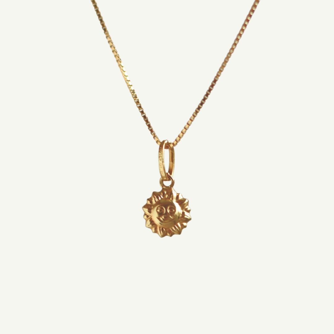 Nosso pingente sol em ouro 18k é uma joia delicada e significativa, perfeita para adicionar um toque de brilho e positividade a qualquer corrente.