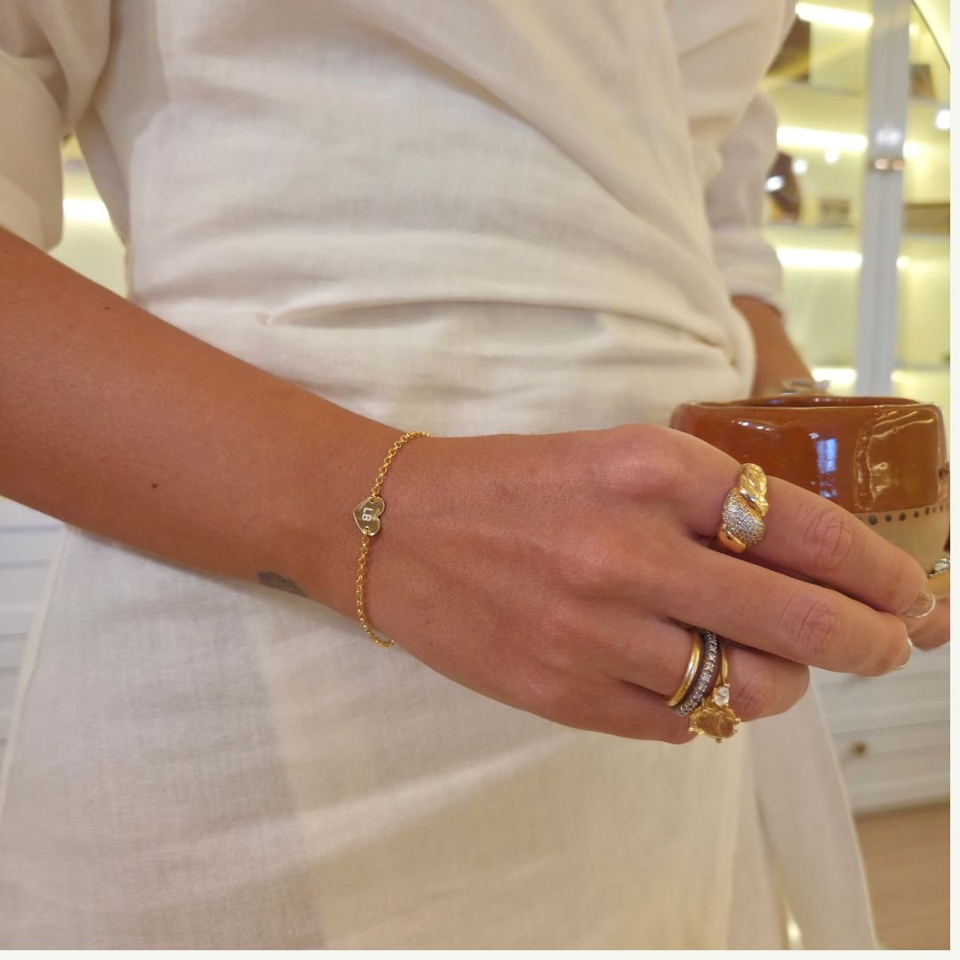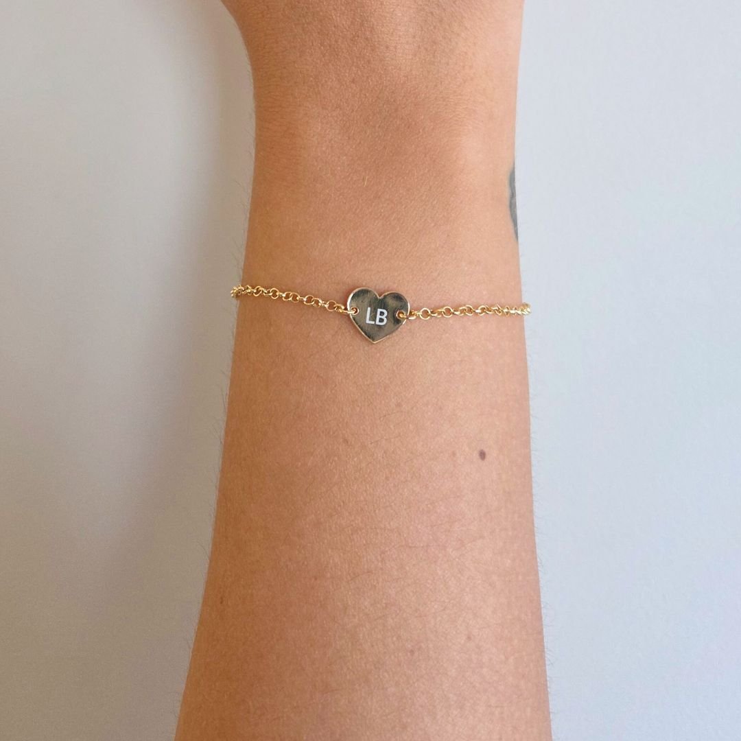 Com seu design minimalista e corrente de elos portugueses, esta pulseira de coração é aquela joia perfeita para o dia a dia.