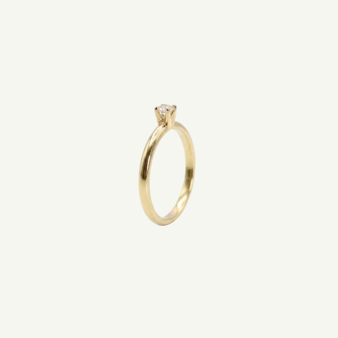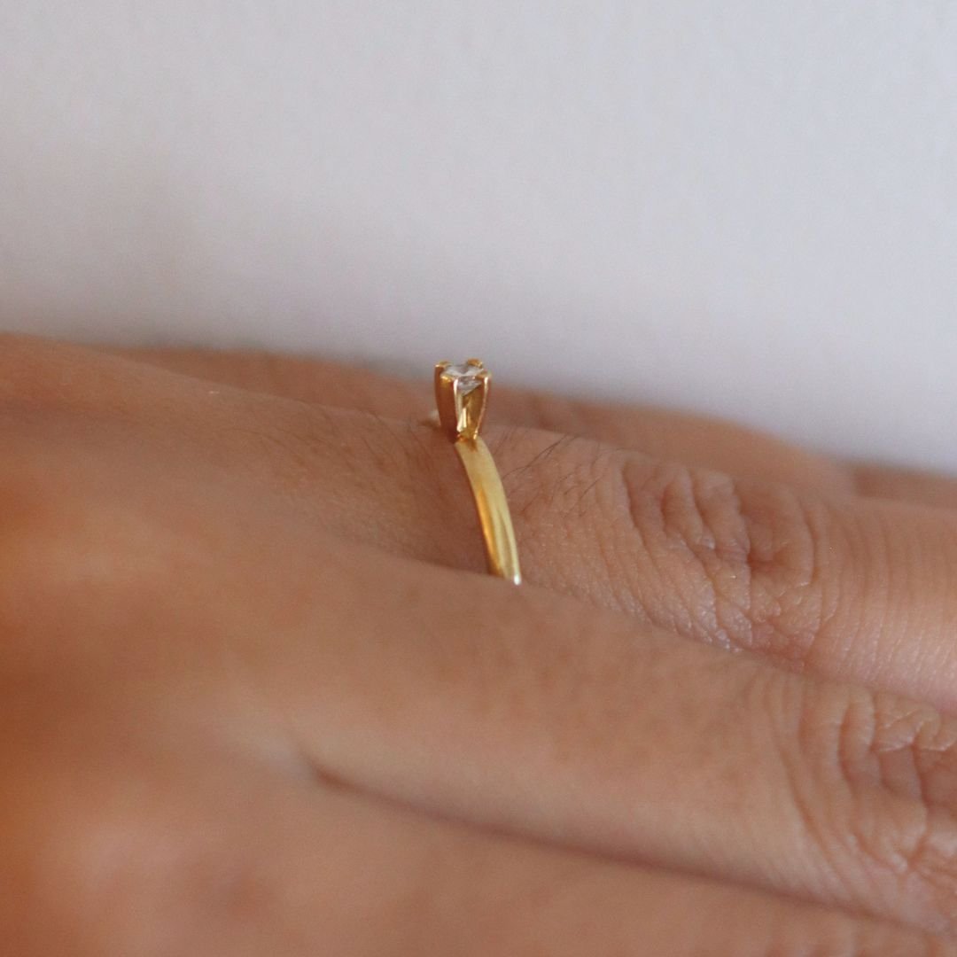 Anel solitário em Ouro 18k com pedra de Diamante de 7 pontos.